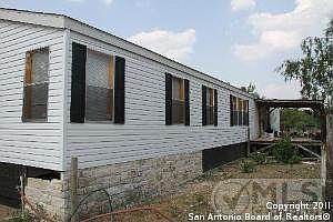9.39 ACRES ! NO CITY TAXES, IN COUNTY WHERE HORSES,CATTLE ALLOWED. GREAT FOR THAT HOME/BUSINESS COMPUND. HAS NARROW DRIVEWAY AND OPENS UP TO THE ACREAGE. NICE 5 YR OLD MANUFACTURED HOME, CLOSE TO1604 OFF THE POTEET HWY. CLOSE TO EVERTHING YET COUNTRY LIVING. LIME STONE SKIRTING WILL BE COMPLETED.CHECK US OUT. Brokered And Advertised By: Kingsland Properties Listing Agent: Henry Pena
