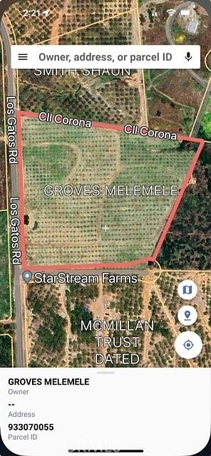 NO HOA PROPERTY. 9.14 NET ACRES OF "ORGANIC" EUREKA LEMONS. THIS IS A YOUNG GROVE JUST(6 YEARS OLD) COMING INTO ITS PRIME PRODUCTION FOR A BRIGHT FUTURE. THERE ARE APPROXIMATELY 1190 TREES THAT WERE PLANTED IN AUGUST OF 2018. THIS GENTLE TO ROLLING TERRAIN IS LOCATED IN THE MICRO CLIMATE "GREAT GROWING" AREA KNOWN AS DE LUZ. FULLY PAVED ROAD ACCESS (ABOUT 15 MINUTES FROM 1-15) INTO THIS BEAUTIFUL VALLEY OF ORGANIC EUREKA LEMONS. PERFECT SITE FOR A GENTLE FARMER OR A FAMILY COMPOUND. THERE ARE SEVERAL NATURAL GENTLE ELEVATED KNOLLS TO CONSTRUCT A CUSTOM HOME SITE WITH PLENTY OF SITES FOR AN EXTRA ADU OR GUEST HOME. UTILITIES: WATER INSIDE THE PROPERTY WATER METER INCLUDED, POWER VERY NEAR BY. ADVISE BUYER TO VERIFY INSTALLATION COSTS WITH SCE "EDISON". THE PROPERTY IS TOTALLY FENCED FOR THE MAXIMUM SECURITY. PERFECT OPPORTUNITY FOR THOSE WHO WANT PRIVACY. NO HOA OPENS MANY OPPORTUNITIES. HURRY WILL NOT LAST. GROVE REPORTS WILL BE AVAILABLE TO QUALIFIED BUYERS.
