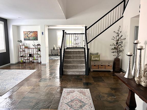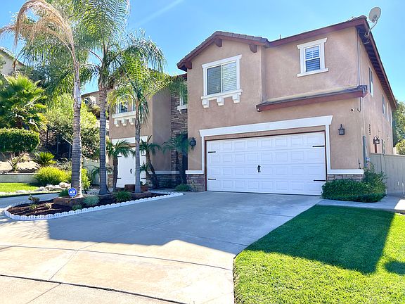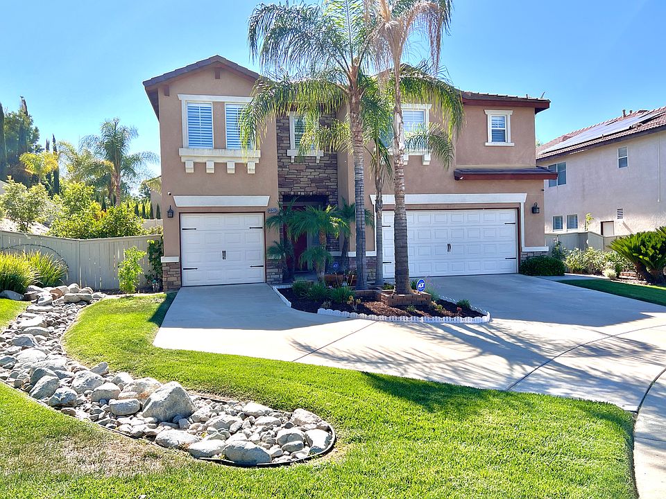 **Stunning 5-Bedroom Home in Redhawk Community** Welcome to this immaculate and extensively updated 5-bedroom, 3.5-bathroom residence, boasting a spacious 3,378 square feet the largest floor plan in the highly sought-after Redhawk community. Nestled on a corner lot in a serene cul-de-sac and perched against a picturesque hillside, this home sits on nearly half an acre (17,424 square feet), offering ample outdoor space. As you step through the elegant front door, you are greeted by a grand entryway featuring soaring vaulted ceilings and a beautiful staircase. The lower level showcases exquisite slate flooring, while fresh carpeting upstairs adds a touch of comfort. The home is adorned with modern recessed lighting, built-in features, and plantation shutters that enhance both style and functionality. The contemporary kitchen is complete with a walk-in pantry, a custom marble backsplash, and a generous center island. It also features a reverse osmosis water filtration system. The adjacent family room includes built-in glass window cabinets, a dedicated workspace, and a cozy brick fireplace, making it perfect for relaxation and entertainment. Stay comfortable year-round with a QuietCool whole house fan, central air conditioning, and energy savings from the SunPower solar panel system. Upstairs, you'll find a versatile bonus loft area, ideal for a playroom, office, or additional living space. The master suite is a true retreat, featuring vaulted ceilings, expansive walk-in closets, and a luxurious bathroom with dual vanities, a soaking tub, and a separate shower. Bedrooms 2 and 3 share a convenient Jack and Jill bathroom, while bedrooms 4 and 5 provide ample closet space. An upstairs laundry room adds to the home's practicality. Home features an expansive backyard, which includes a garden area, mature fruit trees (including avocado, peach, apricot x2, plum, fig x2, apple, jujube, pomegranate, kumquat, lemon, grapes, blackberries, boysenberry, artichokes, and rhubarb when in season), a pergola, and a built-in grill and island perfect for outdoor entertaining. Additional features include a separate 2-car and 1-car garage. The inviting red front door leads you into a thoughtfully designed interior filled with natural light. The formal dining area, complete with a built-in China cabinet, and an elegant living room creates an ideal setting for gatherings. Residents of this community enjoy a strong sense of safety and camaraderie, with access to top-rated schools in the Temecula Valley Unified School District, including the highly acclaimed Great Oak High School. You'll be conveniently located near parks, hiking trails, shopping, dining, and just 10 minutes from the I-15 freeway, providing easy access to the beautiful Temecula wine country. Don't miss the opportunity to call this stunning property your new home!