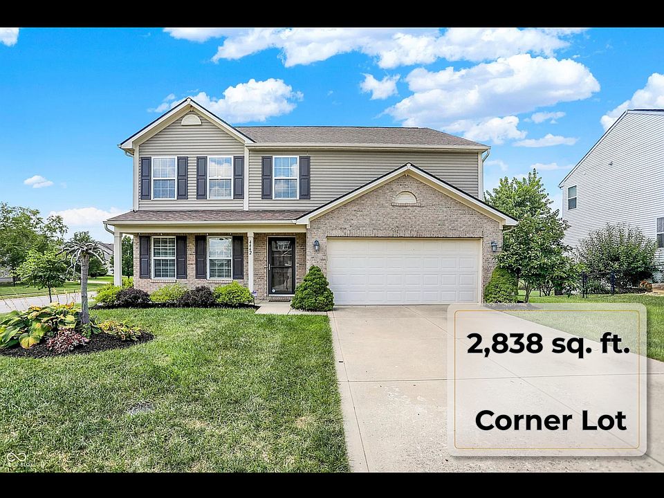 Welcome to Hunters Crossing! This move-in ready 4-bedroom, 2.5-bath home offers 2,838 sq ft on a desirable corner lot in Franklin Township. Recent updates include a new roof and water heater (both 5 yrs) plus a full kitchen and bath remodel by Booher Remodeling, a highly regarded local contractor known for quality finishes. The main level features an open floor plan with laminate flooring, formal living and dining areas, and a remodeled kitchen with quartz countertops, tile backsplash, black stainless appliances, center island, and breakfast bar. The spacious family room includes built-in adjustable shelving, perfect for displays or storage. Upstairs, the 2017 primary suite offers built-in shelving, a premium double vanity, and a walk-in stone-tiled shower. Three secondary bedrooms include one nearly as large as the primary-ideal for multigenerational living, teens, or a large home office. A dedicated upstairs laundry room adds convenience. Outdoor living shines with a large deck, pergola, fire pit, and refreshed landscaping, creating the perfect space for entertaining or relaxing at sunset in the west-facing backyard. Neighborhood amenities include a community pool, wooded walking trails, and direct access to Wolf Run Park with ponds and nature areas. Located just 10 minutes to shopping, dining, and highways, and 20 minutes to downtown Indianapolis, this home combines comfort, updates, and location. With its thoughtful remodels, functional layout, and inviting outdoor spaces, 4442 Bow Ridge Lane is truly move-in ready and waiting for you.