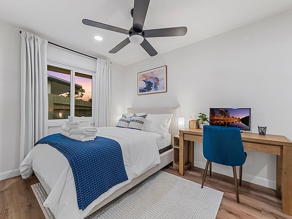 Available for Short - Mid Term Stays! Discover refined comfort in this fully furnished private unit within our newly updated duplex. Enjoy high-speed internet, sleek modern decor, a dedicated workspace with monitor, and a charming patio with seating and string lights. Perfect for traveling nurses, digital nomads, and corporate stays, this home is centrally located in Bay Ho (92117) near Pacific Beach, Mission Bay, La Jolla, and Bird Rock, with quick access to downtown San Diego. Reserve your stay today for an unforgettable experience. 1 small pet allowed with prior approval. $500 non refundable deposit. AMENITIES: Fast Wi-Fi In-unit washer & dryer Luxury Vinyl Plank Flooring 55" Smart TV with Roku Free parking (assigned and street parking) Single Garage Self check-in with smart lock Designated workspace & Laptop Monitor PRIMARY BEDROOM Queen bed Blackout curtains Closet & Dresser Ceiling Fan 55" Smart TV & Roku Night stands & lamps 2nd BEDROOM Full bed Blackout curtains Closet & Dresser Ceiling Fan Dedicated workspace with laptop monitor Night stands & lamps BATHROOM Tub/shower combo + fresh towels & toiletries First Aid Kit DINING AREA Within the bright living area. Seating for 3, extra chair in the hallway closet. Dinnerware, Silverware, Wine glasses KITCHEN Stove Fridge/Freezer Washer/Dryer Nespresso Machine & Milk Frother Microwave Kettle Pots, Pans, Cooking Utensils Olive Oil, Vegetable Oil, Salt, Pepper, Creamer, Sugar, Tea LIVING ROOM Sofa and accent chair 55" Smart TV & Roku High Speed Internet up to 500Mbps Dimmable lights Ceiling Fan PATIO Right off the living room Outdoor furniture & string lighting - great for morning coffee or relaxing evenings HALLWAY CLOSET Beach bag & Beach Towels Iron & Ironing Board Extra folding chair Umbrellas CAR RENTAL Car Rental available via TURO. Send us a message to inquire. THINGS TO NOTE : The property is on a busy street which can be noisy There is no AC, only ceiling fans. It can get hot during the warmer months Tenant on other side of the duplex may enter the yard with the patio to collect their mail Stays greater than 28 days will require a background check, credit check and a separate lease. Stays greater than 28 days will include utilities up to $250. Anything exceeding that will be the guests responsibility. A signed rental agreement, ID upload and a $1500 security deposit hold is required for all bookings. $350 cleaning Fee Minimum age of 25 to book. Utilities included up to $250. Anything in excess will be the guest's responsibility. Max 1 small pet. Available for Short and Mid Term Stays.