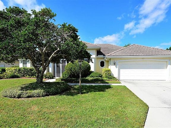 Built in 1995, this 2,200 square foot Florida ranch home has three bedrooms, two bathrooms, Living Room/Dining Room combination, Kitchen/Family Room combination and a dinette off the Kitchen. There is an inside utility, no washer/dryer, a two-car garage, a newly Marcite, saltwater, solar-heated pool, with a new pump, all in a totally fenced back yard (owner owned). There is a motorized awning off of the covered lanai area and the landscaping has just been recently revamped for the sale. The Kitchen has newer granite counter tops and the HVAC system has all newer duct work. There is an owned security system that is not currently monitored because of the sale. Tray and cathedral ceilings, wood laminate flooring in all of the bedrooms. The Home Owner Association fees are very low, only $280 annually and the owners self-manage the community. Normal Sarasota County leasing, pet and vehicle restrictions do apply. The home is very easy to show and sell.
