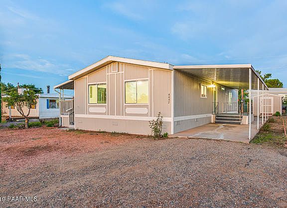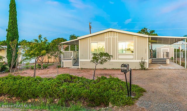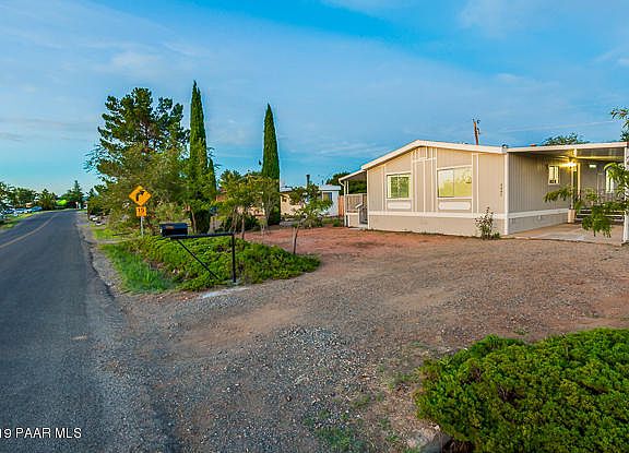 Welcome home! We invite you to take a look at this beautifully renovated manufactured home in the heart of Prescott Valley! This lovey home boasts an open floor plan with 3 bedrooms and 2 bathrooms and is nicely upgraded throughout with laminate floors, new paint, upgraded fixtures, lighting and stainless steel appliances! You will enjoy a covered carport area, RV parking, an oversized entertainment covered porch, many fruit trees and a shed for all your gardening tools. With this oversized 9,000+ sq ft lot, let your imagination run wild!
