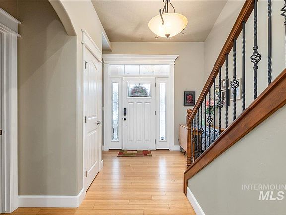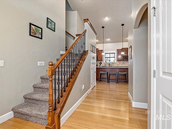 4 bedrooms, 3 full baths, real hardwood floors in this beautiful home tucked away in Promontory Ridge. Minutes from shopping, downtown Boise and all the amenities of Southeast Boise. Upstairs boasts views from the balconies of both bedrooms creating a perfect separation of space. Vaulted ceilings with an open floor plan with a gas fireplace in the great room. Two bedrooms (one is being used as an office) are on the main floor. Each has their own bathroom! Master is tucked away toward the back yard for ultimate privacy. Gourmet kitchen with real hardwood floors. This home is one of the more upgraded home in this price range. 3 car garage with workshop space and a pull through! This home is exquisite and ready for a new owner
