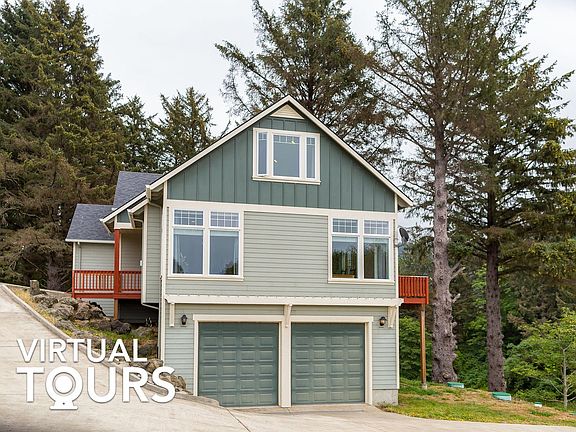 Enjoy spectacular Pacific Ocean views in fabulous Sahhali Shores! This gorgeous two-story home features 3 bedrooms, 3 baths, and 2,628 square feet on a huge .8-acre lot on a quiet cul-de-sac street backing green open space. Residents enjoy a nature trail to the beach with enchanting sandy shores, sea grass & dunes. Elevation offers premier ocean views and is safely out of tsunami zone. Inside is a warm & welcoming open-concept floorplan with a spacious great room, complete with gorgeous hardwood floors, high ceiling, recessed lighting, contemporary gas fireplace, and large double-paned windows with breathtaking ocean views. Great for entertaining, the open kitchen features dark granite countertops, shaker-style cabinets, a large center island with gas cooktop, separate pantry, and an eat-in dining area with access out to the amazing back deck with unbeatable treetop views. The main floor also features a home office/possible 4th bedroom and a tranquil primary suite offering wood floors, big picture windows, and a beautiful en-suite with tile flooring, dual vanity w/ granite countertop, separate shower, large soaking tub, and walk-in closet. The remaining bedrooms all feature plush carpet flooring and large windows with lots of natural light. Upstairs features a large bonus room with vaulted ceiling that would be ideal as a game room, theater room, or additional living space. Separate laundry room with lots of storage. Central A/C. Large 3 car garage with 9ft+ doors. HOA: $99/month and covers common area maintenance, legal, and administrative labor costs. Only a short drive to Neskowin and Pacific City. Your dream home on the Central Oregon Coast awaits!