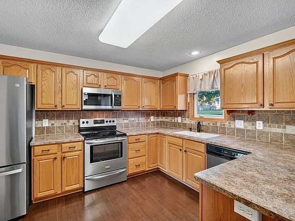 Welcome to this beautifully maintained two-story home, perfectly situated in a highly sought-after neighborhood! From the moment you step inside, you'll appreciate the warm, inviting atmosphere and thoughtful layout. The main floor features a formal dining room just off the kitchen, ideal for hosting gatherings. The kitchen boasts hardwood floors, a stylish tile backsplash, and comes fully equipped with all stainless steel appliances. The cozy living room is centered around a charming fireplace, perfect for relaxing or entertaining, and includes a convenient half bath nearby. Step through the patio doors to your spacious full-fenced backyard retreat, complete with a storage shed for added convenience. Upstairs, you'll find four comfortable bedrooms and two full bathrooms, including a private en-suite in the primary bedroom. The finished lower level offers a generous family room and plenty of storage space, ideal for everyday living and entertaining alike. Recent updates include a new furnace, air conditioner, and water heater (2024), plus new paint on main floor (2025), new carpet on the second floor (2025), ensuring peace of mind and modern comfort. Located just minutes from parks, schools, Valley Stadium, trails, restaurants, the library, and great shopping, this home truly has it all. Don't miss your chance to make it yours!