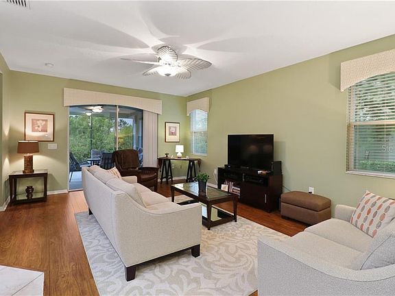 Enjoy Florida living in this immaculately appointed 3 Bedroom, 2 bath Villa on a quiet premium cul-de-sac and conservation homesite with COMMUNITY POOL. MAINTENANCE FREE LIVING allows you to enjoy this home the moment you enter. You will appreciate the soft neutral tones, cool ceramic tile & wood laminate flooring displayed in an expansive great room plan. At the heart of the home is a gorgeous kitchen boasting 42 inch wood cabinetry, crown molding, granite counters, upgraded stainless steel appliances, walk-in pantry, antique style copper swivel faucet, pendant lighting and a center island with breakfast bar and dining area. Double glass sliders lead you to an expanded screened lanai with a picturesque view of nature. The expansive master suite, also overlooking the conservation area, offers granite counters, dual vanities, Roman tub, walk-in shower and walk-in closet. At the front of the home there are two comfortably sized secondary bedrooms with a shared full second bathroom with granite counters and combined tub-shower. Over $10,000 in upgrades with freshly painted interior compliments this fabulous home ! Ashton Oaks is conveniently located close to Wiregrass Commons Mall, The Premium Outlets, Hospitals, shopping, bars and restaurants and easy access to I75. See the 3D Matterport walk-through Tour.