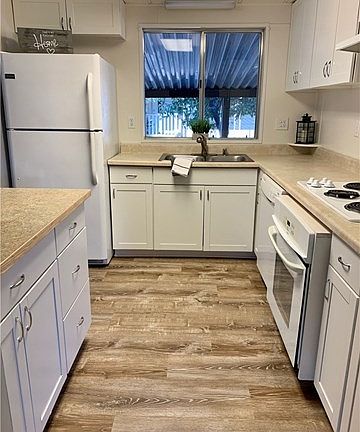 Looking for a weekend getaway, full time residence or rental property in Paso Robles? This 1440' manufactured 3 Bedroom/2 Bath home with an extra room for an office or playroom has been updated with brand new wood laminate flooring, fresh paint throughout, new cabinets, kitchen sink, vanities, light fixtures, newer roof and HVAC system. The spacious living room opens to the dining room and kitchen and has big windows for lots of natural light. The covered and private wooden deck overlooks the large low maintenance landscaped lot (.18 acres) with views of the hills, trees and greenbelt area and is perfect for relaxing and entertaining. The Heritage Ranch community amenities include 24 hour patrol and guard gate, pools, golf range, sports courts, trails for hiking and biking, senior center, an equestrian center for riding horses, lake access and many more with a shopping center, school and fire station located nearby. You won't want to miss out on this opportunity to own a home in a nice area at a great value!