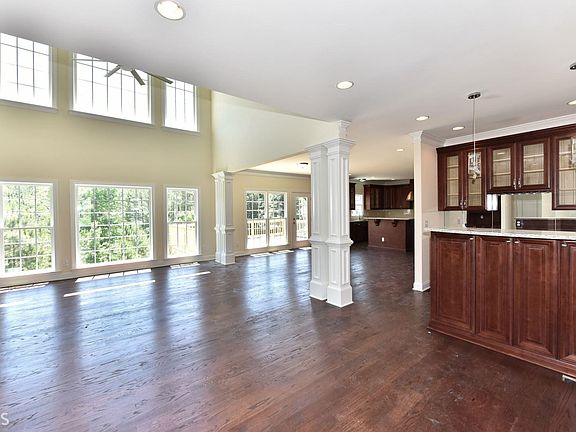 Stunning custom built presale with circular floating staircase. Heavy trim throughout with full finished terrace level including theater. Situated on a lake front homesite. Side covered porch for lake viewing. What a beauty