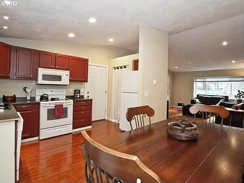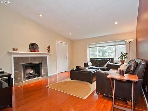 Corner lot one level living with vaulted ceilings, recessed lighting, wood-burning fireplace. Master suite with glass tile shower, tile floor. Landscaped yard w/terraced decks, quiet setting. Newer windows. All appliances included. Sold AS IS, move-in ready.