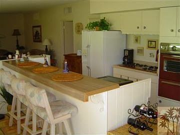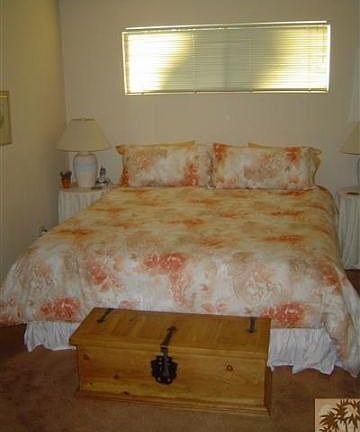 This well-maintained mid-century home is available for your winter vacation! The owners have provided everything from board games to books to make your stay comfortable. A wall of windows along the dining room, kitchen and living room provides perfect views of the community pool and the mountains beyond. You can even pick your own fresh grapefruit right off the tree! This home has a master suite plus two additional bedrooms. There is lots of room to relax and enjoy the desert lifestyle. Close to Indian Wells Tennis Gardens, shopping, entertainment and restaurants in Indian Wells, Palm Desert & La Quinta. Smoke-free home. Sorry, no pets.