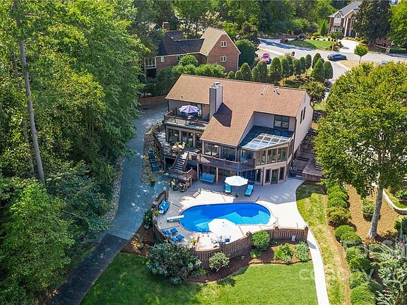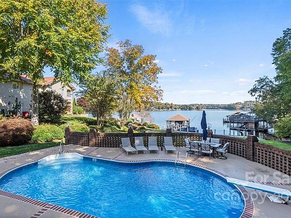 This meticulously maintained waterfront home in Moore's Ferry overlooks Lake Hickory's main channel and features three full levels of living space, over 5,300 HSF, 4 bedrooms, 4.5 baths, in-ground pool, and more! The welcoming front entrance leads into a vaulted ceiling great room with lake views, stone fireplace, and adjoining formal dining area. Flanking the great room, you'll find two relaxing sunrooms, one opening onto the remodeled kitchen with updated cabinetry, professional grade appliances, stone countertops, bar seating, and wine cooler. The main level also offers a double garage and primary suite with newly updated private bathroom and double closets. Upstairs, you'll find three additional bedrooms and two full bathrooms. The full lower level offers a relaxing den with fireplace, entertaining area, exit to the pool patio, remodeled full bath for pool guests, laundry, and office area. Outside, you'll find a hot tub, pool, covered dock, new Trex boardwalk and paved boat ramp.