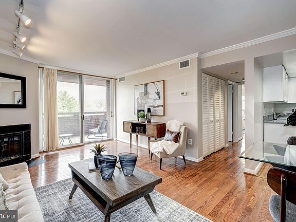 Spacious and bright top floor corner 2 bedroom 1.5 bath unit with fireplace, wood floors, w/d, garage parking and an oversized balcony with views over the neighborhood. The second bedroom would make a great office, den, nursery or all three! Abundant closet space, new granite counter tops and an XL extra storage space make this a great find. The building is pet and investor friendly with a prime location just 3 blocks to Metro and close to coffee shops, Giant, Golds gym and many great restaurants.
