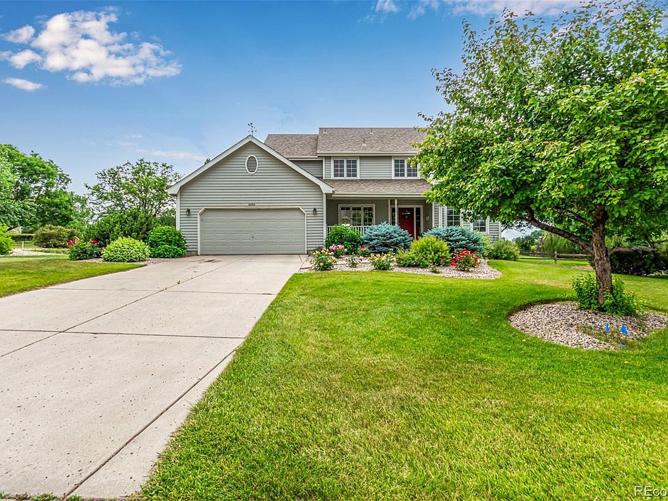 Enjoy owning this incredible 4-bedroom home, where functionality, comfort, and scenic beauty come together seamlessly! It displays an excellent curb appeal highlighted by a mature landscape, a 2-car garage, and a welcoming front porch where you can spend quiet mornings. The inviting living room features bountiful natural light, neutral palette, and a delightful fireplace, creating a relaxing ambiance to unwind. In the spotless kitchen, you will find recessed lighting, plenty of cabinetry topped with crown moulding, tile backsplash, built-in appliances, a convenient breakfast bar, and a dining area with a lovely bay window. Romantic main retreat impresses with plush carpet, an ensuite with dual sinks, jetted tub, and a walk-in closet. The spacious basement includes a bonus room with endless potential, think office, gym, playroom, or media center. Finally, the expansive backyard with a cozy deck sets the stage for peaceful moments or festive gatherings under the stars. Easy access off of I25. Don’t miss your chance to make it yours!