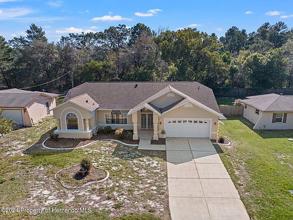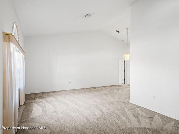 ACTIVE UNDER CONTRACT - ACCEPTING BACK UPS! Welcome home to this ONE OWNER, lovely abode, with almost 1,900 square feet, located in one of the most central and quiet neighborhoods in Hernando County. Situated between no front OR rear neighbors, this home is ideal for privacy and tranquility! The freshly painted exterior (2024) and charming entryway lead you into the inviting oversized living room, showcasing the open concept and cathedral ceilings! The dining room sits right off the living space and backs up to the kitchen, with an eat in area, lots of natural light, a large island— with lots of cabinets and counter space and is open to all the shared living spaces— great for entertaining! Off the nook and dining room are sliders that lead you to the massive lanai area— this space is all you can ask for in Florida, to truly enjoy indoor/outdoor living! Back inside, off the kitchen, is a second living space— the den is a perfect spot for watching the big games, hosting parties or cuddling up and watching a movie! With the high ceilings and great natural light, this welcoming space can be utilized in so many ways! The spare bedroom sits tucked away in the back of the home— with freshly cleaned carpets (entire home), a large wall to wall closet and its own oversized bathroom. There is also additional storage and a large laundry room on this side of the home. On the opposite side of the house, excellent for additional peace, is the owner's retreat. This grand space is perfect for larger furniture, has vaulted ceilings, walk in his and hers closets and an attached en suite— with double vanities, a soaking tub and a stand-alone shower! Other great features about this property? An oversized 2 car garage, with brand new garage door opener (2023), newer hot water heater (2021), newer roof (2017) and a newer AC (2022). All the big stuff has been taken care of; you just need to move your life in! Sitting minutes away from all Hernando has to offer— shopping, eateries, hospitals and activities, this property will not last long! Call today for your private showing!