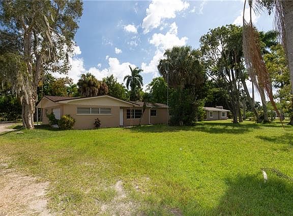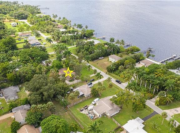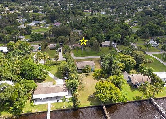 Across the street from the river! This home sits on a huge lot, .40 acres, there is plenty of room to add a pool. There are 3 bedrooms, 2 full baths, living room, family room, a huge laundry room, 2 car attached garage and a storage room. Home was remodeled in 2018 and the roof was replaced in 2012. Features include: updated kitchen, flooring and baths, new gutters and mature tropical landscaping. There is a community boat ramp nearby. Conveniently located just a few miles from downtown Fort Myers with shopping, restaurants and waterfront activities.