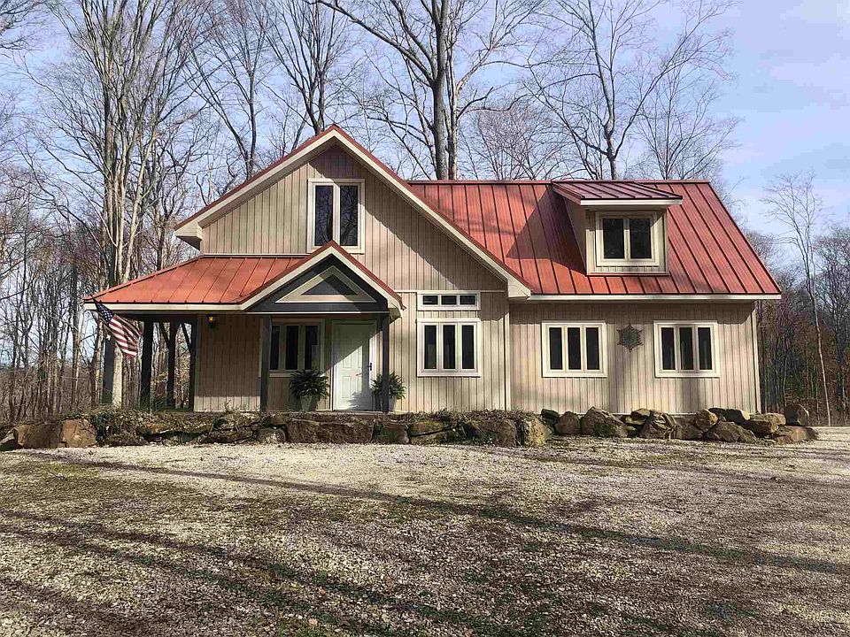 WONDERFUL CONTEMPORARY HOME ON 15.787 ACRES NEXT TO THE HOOSIER NATIONAL FOREST. ANOTHER PLUS IS THAT THE LOST RIVER RUNS THROUGH THIS PROPERTY. THE HOME HAS 3 BEDROOMS 2 BATHROOMS WITH A GREAT KITCHEN, GORGEOUS TILE FLOORS (SOME OF WHICH ARE HEATED), OUTSTANDING SCREENED PORCH, LOADS OF PARKING AND A 2 CAR DETACHED GARAGE. YOU WILL LOVE THE SUNNY INTERIOR, PROVIDED BY AN ABUNDANCE OF CASEMENT WINDOWS!