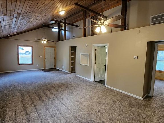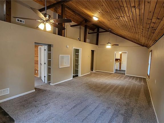 Check out the space in this house!  One of the largest square footage 2 bedroom homes in the Northland.  Vaulted ceilings really open the space up.  New carpet and several updates in the past years including Appliances, 200 amp Electric service, All new HVAC with heat pump in 2020, New roof in 2018 and sewer line replaced last week.  Excellent location for walking to the elementary school or the park with tennis courts just 2 blocks away. Wooded area separates you from one side and back. New house is being built across the street.  Updated price includes foundation repairs that are negotiable.