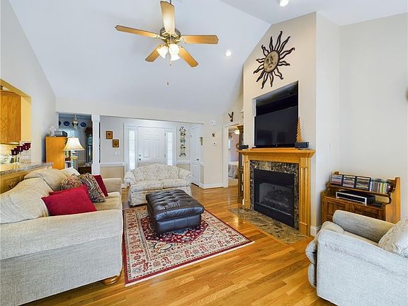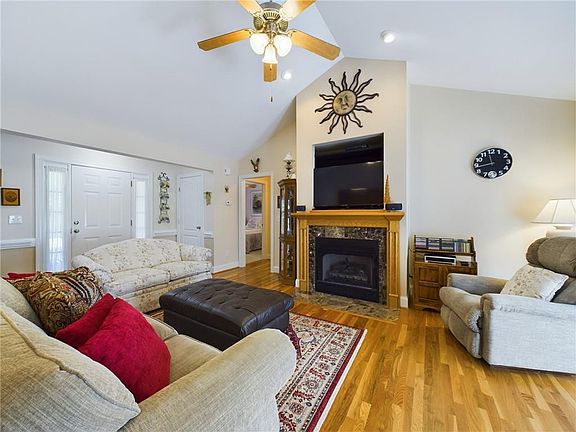 Stone driveway entry greets you as you arrive at this landscaped 1-acre lot adorned w mature trees. This home offers ample space for comfortable living w 3 BR, 2 BAs, & bonus. The open kitchen flows into the family rm, providing a perfect setting for entertaining. Gas fireplace adds warmth & coziness, while the cathedral ceiling enhances the sense of openness. Kitchen features a breakfast area, custom pantry, built-in bookshelves, & secret storage under the bar. Beautiful trey ceiling adds a sophisticated touch to the dining rm for formal gatherings. Primary suite offers a spa bath w double vanity, Jacuzzi Tub, walk-in shower, & walk-in closet. Escape to your private oasis in the backyard, complete w a concrete patio, perfect for outdoor gatherings or simply enjoying the serene surroundings. In addition to the attached 2-car garage w built-ins, this property offers a detached 1-car garage/wired workshop featuring flexibility & ample storage options for your vehicles, tools & hobbies. surroundings. In addition to the attached 2-car garage w built-ins, this property offers a detached 1-car garage/wired workshop featuring flexibility & ample storage options for your vehicles, tools & hobbies.