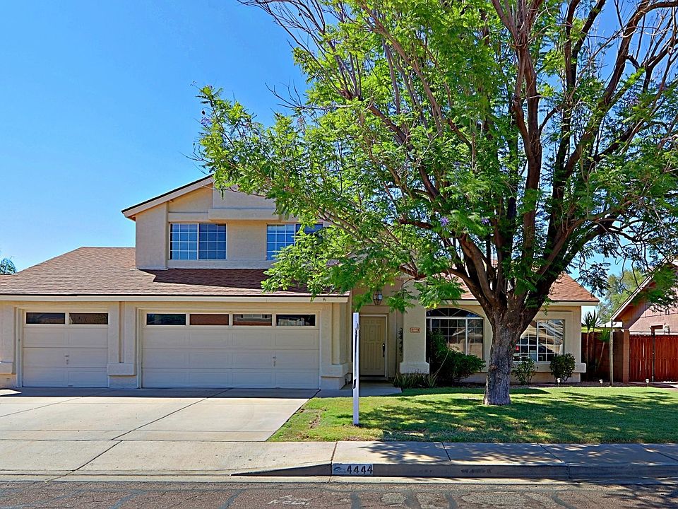Spectacular home in a fantastic location with a giant grassy back yard & a HUGE SAVINGS BENEFIT-$32K solar system included!!! This 4 bedroom, 2.5 bath home has high vaulted ceilings, open floorplan & spacious living & dining room with stunning chandelier. Family room has cozy fireplace & opens to large kitchen with breakfast bar & eating area which overlooks the backyard. Romantic master bedroom has marble flooring & large picture windows looking out to the backyard as well as a private exit. Master bath has gorgeous granite, dual sinks, separate tub & shower & extra storage. Huge, lusciously landscaped backyard with mature fruit trees, grass, garden area, Jungle-style outdoor shower, storage shed, RV gate & extended covered patio all with Mountain Views! Higher-End Solar System is 5.4 kw