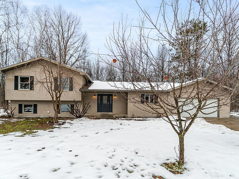 Everything you have been looking for is right here in this well-cared-for tri-level home located just outside of Coleman and only 15 minutes from Midland. The 5 acre property is perfect for your outdoor hobbies and activities. You’ll love the tranquil back yard and deck, perfect for grilling and entertaining next to the decorative pond complete with waterfall. The home itself features a spacious kitchen equipped with stainless appliances, large living room with bay window, real hardwood floors throughout the main living area, and a main-floor master bedroom. Each of the full bathrooms, one on the main floor and one upstairs, boast dual sinks and bathtubs. The lower level offers a huge open living space with a propane stove, and a laundry/mechanical room. To top it off, there's a 2-car attached garage and a 32x46 outbuilding that is partially finished, insulated, and ready to heat with a wood stove. Come check it out for yourself today before it’s gone!