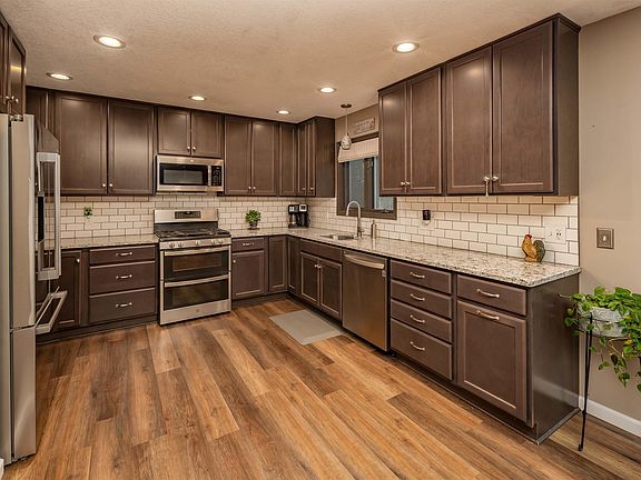 You will Love this Awesome Kitchen. All New Kitchen Cabinets. New Countertops. Plus New Luxury Vinyl Floors in the Kitchen and Family Room. Big Family Room with Gas Log Fire Place. Also has a Formal Dining Room or it could be an Office. Upstairs has (4) Large Bedrooms. The Master Bedroom is Huge, Bath has been redone. Basement is Extra Large 18 x 23 with a small area for desk or an Office. Also has a Walk Out Basement. Deck has been re-done and looks over an Absolutely Beautiful Back Yard. Did I mention a Two Tier Deck. Back Yard has a lot of Beautiful Plants. A Fenced yard and is wooded. Best thing is the trees are on the neighbors yards. You will really Enjoy the Patio with a Fire Pit. The refrigerator in the basement stays. All the Down Spouts are Buried. Custom Window Coverings. Newer Windows in Front of House and Basement. This house has 50 Year Roof which will save you on your Home Owners Insurance.