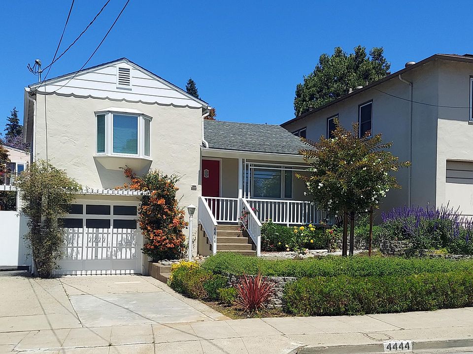 Cozy, sun-filled home on quiet Laurel neighborhood street easy access to 580/24/13 highways and transit (including AC Transit Transbay/57 lines, Casual Carpool, and BART). Walking distance to vibrant Laurel restaurant and shopping district. 2 BR/1BA with hardwood floors throughout, tile in bath/kitchen and continuing outside through French doors that lead to back. Great outdoor deck and backyard area with landscape lighting that highlights the garden, perfect for entertaining or a quiet read. Property includes additional detached office space with its own deck, just the spot for working remotely. Open and bright kitchen with skylight, granite countertops with loads of storage, and almost 20 feet of counter space (one is extra deep) - perfect for cooking and all your kitchen gadgets. Vintage gas Wedgewood stove with overhead built-in microwave/range hood combo. Bright and sunny bathroom with large shower, rainfall shower system, and operable skylight. Tankless hot water heater for endless hot water. Garage with direct house access, remote opener, and washer/dryer (space for car in garage/driveway and also ample street parking). Updated landscaping, paint, and fixtures. Extensive under house and attic storage. Wiring in place for Level 2 electric car charger. Cat or dog acceptable with prior landlord approval and additional fee. Property owner covers landscape upkeep, security alarm monitoring, and garbage service. Tenants will pay for gas/electric and water. Please note that renter(s) must have a solid and verifiable gross income that is at least 2x monthly rent, a minimum 700 FICO credit score, no history of prior evictions, and positive landlord references. This property requires a security deposit equivalent to two months' rent and a minimum one-year lease. This property requires a security deposit equivalent to two months' rent and a minimum one-year lease (prior landlord approval and additional fee required for pet).