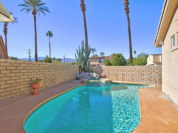 Immaculate Palm Desert! Prime Central Location. Fully furnished and available month-to-month. One level home in pristine condition. No stairs entry, 2,078 sq feet, 3 bed, 2 baths, fully furnished and well-appointed for vacation or year-round living. The home is equipped with air conditioning and two gas fireplaces. High-speed internet that covers the property, both inside and outside. Three new Samsung smart TVs with cable TV and apps for Netflix, Hulu, Prime, and Apple TV (using your own accounts). The interior of the home has been newly repainted throughout and the flooring is primarily easy-care tile and there is new carpet in the bedrooms. The great room at the center of the home has two large, leather reclining sofas, a TV, a gas fireplace, a six-person dining table, and a desk that overlooks the rear patio that is perfect for when you need to work. The kitchen with granite counters is fully stocked with glassware, dishes, silverware, cooking utensils, pots, pans, coffee maker, blender, toaster, and more. There is a large walk-in pantry, and the kitchen has newer appliances that include a gas cooktop, in-wall convection oven, full-size microwave, dishwasher, and a French-door refrigerator with ice maker. There is a four person table in the breakfast nook as well as three chairs at the kitchen counter. Just outside the kitchen on the back patio is a gas BBQ. The primary bedroom suite has a new Tempurpedic, California king-sized bed, a five-piece bathroom with a huge soaking tub, and a large, walk-in closet. A two-sided gas fireplace separates the tub from the bedroom. Large sliding door to the patio. All three of the bedrooms are fully furnished with dressers, nightstands, bedding, sheets, and ceiling fans. Guests have full use of the three-car garage and full-size washer and gas dryer. Three sliders open to the patio and heated pool with a waterfall and hot tub. The patio is fully stocked with chaise lounge chairs, exterior dining table and chairs, numerous umbrellas, and pool toys. Experienced and reliable host. $1,000 deposit. All utilities included but any gas or electric bill over $125 per month is the renter's responsibility. The pool and hot tub are heated with gas if desired.