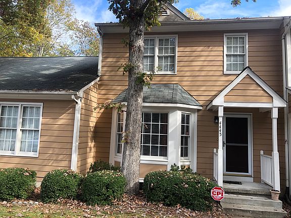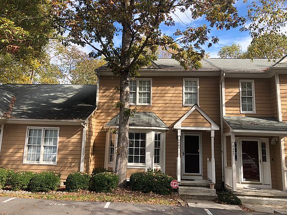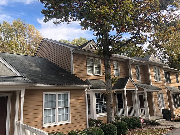 GREAT location with this Raleigh Townhome. Laminate hardwoods in entry, kitchen and dining room. Crown molding throughout the downstairs and gas log fireplace in the family room. FRESH interior paint & NEW carpet & pad!!! Kitchen overlooking living room is great when entertaining guests. Master bedroom with vaulted ceiling and double closet! Dual vanity is master bath makes getting ready in the morning a breeze. Wooded view from the back deck & storage shed are great bonuses!