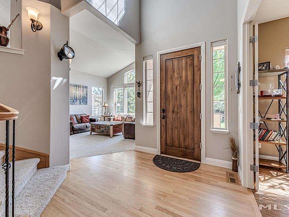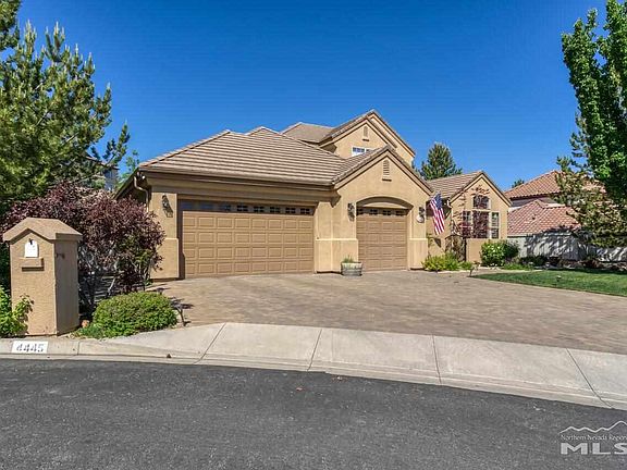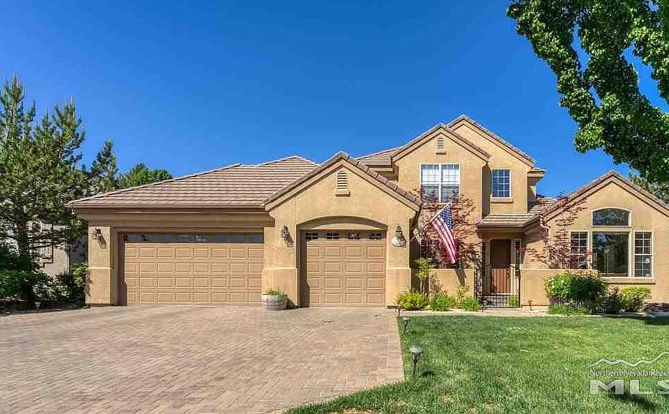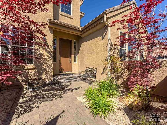 Gorgeous property in Caughlin Ranch on a quiet cul-de-sac that backs to common area. A charming, gated courtyard leads you to the front door of this 4 bed + office/ 3.5 bath home. The main floor master suite boasts a double-sided fireplace that adjoins a luxurious spa-like bath, complete w/ large, jetted tub. The gourmet kitchen has neutral colored granite counters & updated high-end appliances, including a gas cooktop and double ovens. The kitchen window provides beautiful views of the lush landscaping.