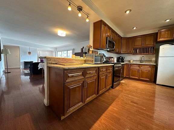 Granite stone countertops, stainless steel range, stainless steel dishwasher, beautiful wood floors, recently upgraded stainless steel sinks and faucets in the kitchen.