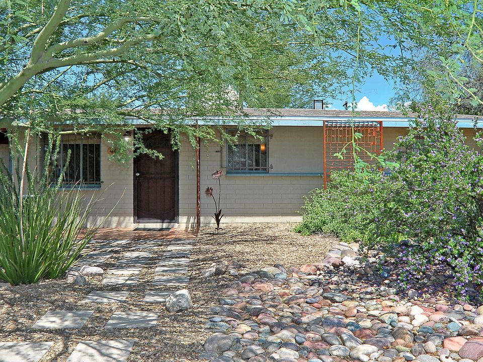 * This gorgeous mid-century home located in Central Tucson, sits on .27 of an acre gated lot surrounded by beautiful natural desert vegetation. You'll fall in love with the beautiful, exposed wood beam in the living room, fully updated chef's kitchen with butcher block countertops, subway tile backsplash, white cabinets, gas stove and stainless steel appliances. The updated bathroom will not disappoint with its unique tiled wall and subway tile shower/tub. The floors are wood laminate throughout with no carpets! Other updates include tankless water heater, and new roof in 2017. The huge backyard features a separate gated area that could be used for gardening, building a workshop or studio. Endless possibilities with this property! Come make this charming little house, your new home!
