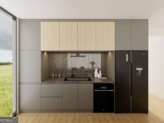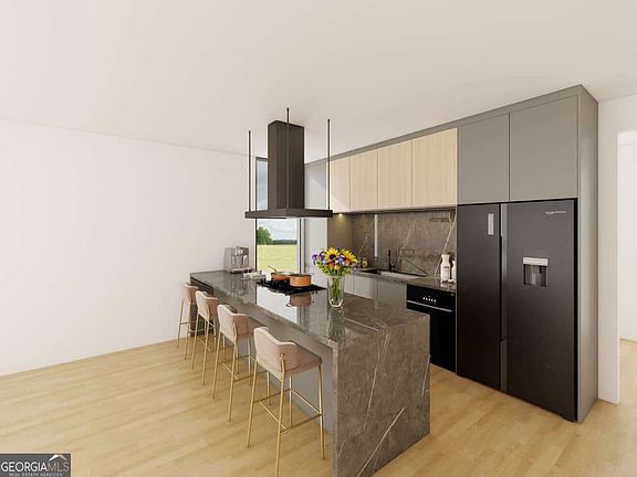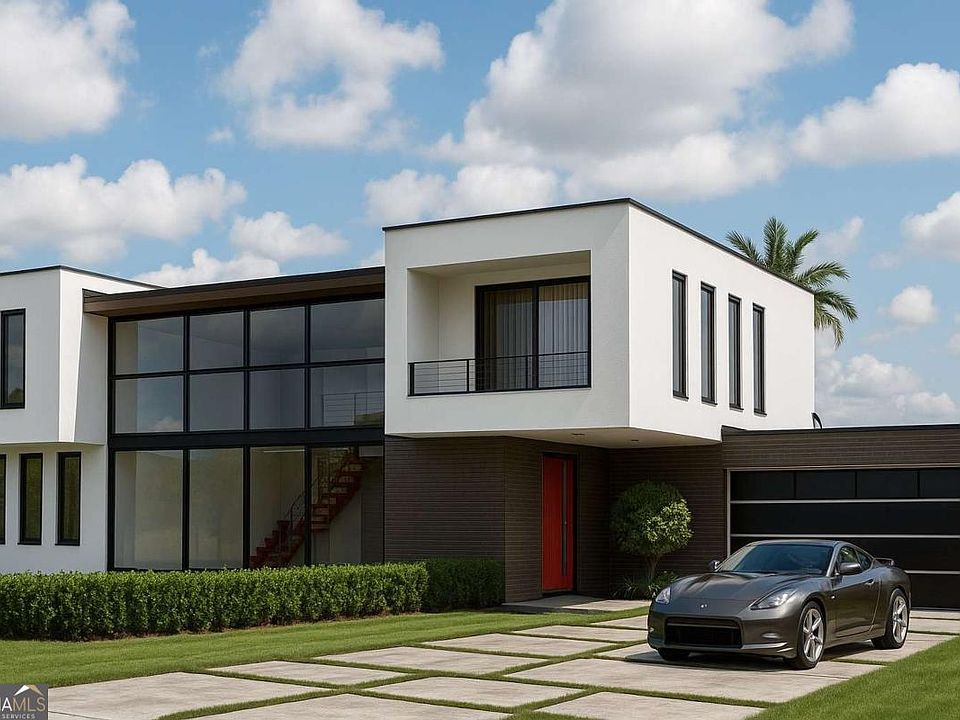 Welcome to this beautifully crafted new-construction contemporary home in South Fulton. This 4 bedroom, 4.5 bath residence showcases modern architecture, high ceilings, and refined finishes throughout, blending luxury and functionality in every detail. The main level features an open-concept layout with a spacious great room, dining area, and chef's kitchen complete with quartz countertops, a large waterfall island, and a walk-in pantry. A guest suite with a full bath is conveniently located on the main level, perfect for visitors or multi-generational living. Upstairs, the owner's suite offers a spa-inspired bath, dual walk-in closets, and a private terrace. Two additional bedrooms each include their own en-suite baths, providing both comfort and privacy. Other highlights include a custom steel mono-stringer staircase with glass railing, a stucco exterior accented by aluminum-framed windows, and a modern pivot entry door. The property is now approaching its final stages of construction, with an estimated completion timeline of November 2025. Located just minutes from major corridors, parks, and shopping, this home offers modern elegance and convenience in a peaceful South Fulton community.