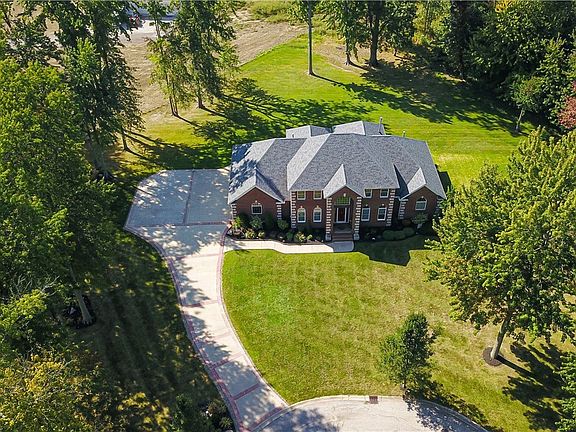Welcome to this one owner, exquisite brick colonial situated on a peaceful cul de sac within the esteemed Stonegate Subdivision. The grand entrance welcomes you with a stunning foyer adorned with a sparkling crystal chandelier, centrally poised staircase, spacious living areas, gleaming hardwood floors, lofty ceilings, and every luxury expected of a custom-built residence. The main level features an office with elegant French doors, formal dining room, living room with a soaring 19-foot ceiling and a cozy gas fireplace, all complemented by an abundance of natural light. The well-appointed kitchen is complete with custom cabinetry, center island, granite floor, and walk-in pantry that offers ample storage space. Included on the first floor is a regal owner's suite, complete with gas fireplace, ensuite bathroom with jetted tub, electric radiant floor heat and a walk in closet. On the second level you will find a secondary primary suite featuring an ensuite bathroom, and two extra spacious bedrooms that share a connecting full bathroom. With a fully equipped kitchen, craft/laundry room, gym room, and wine cellar, the lower level adds to the living space and offers hot water radiant floor heat with versatile usage as an in-law suite or an impressive entertainment area. The garage is equipped with hot water radiant floor heat, hot and cold water and electric garage door openers. Unwind from your day and enjoy your favorite beverage on the stamped concrete patio in the back yard.