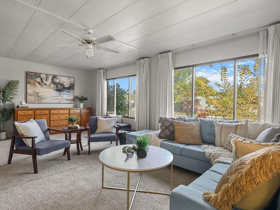 Welcome to this sweet deal on Honeycomb Way — a quiet cul-de-sac where you own your land and your home. This is not a mobile home park — no space rent, no park rules, just your own slice of the American Dream (complete with a white picket fence!). Step inside this bright and cheery home with fresh interior paint and a spacious floor plan featuring two living areas, an open dining space, and a large kitchen with a breakfast bar, pantry, and abundant counter and cabinet space. The primary suite is enormous and filled with natural light, offering a slider to the back deck, a huge walk-in closet, and a roomy ensuite with dual sinks, a soaking tub, and plenty of storage. The second bedroom has an attached bathroom with a stall shower. And you'll love your large laundry room/mud room! This home has a new HVAC system, section 1 pest clearance, & newer metal roof.