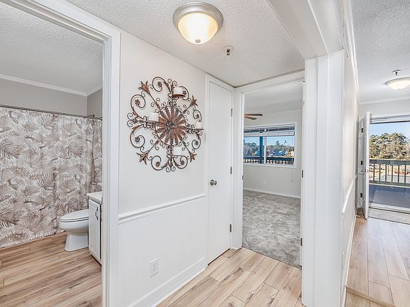 Enjoy beautiful views of the intercoastal waterway from the 3 bedrooms 2 bath condo in the desirable gated Kingsport community! This nicely upgraded condo features a direct view of the Intracoastal Waterway from the large, covered balcony! The building features an added convenience of an elevator! This condo features all new wood look laminate flooring throughout the Livingroom, dining area, kitchen and entry way. Other updates include fresh paint throughout, new light fixtures, new ceiling fans, crown molding, chair rail and a new HVAC system installed in Jan 2023. The upgraded kitchen features new handwear, new microwave, granite counter tops and a tile backsplash! All three bedrooms are good sized and feature ceiling fans and new carpet! Kingsport is located just off HWY 90 in Little River and is positioned directly on the Intracoastal Waterway! Community amenities include an outdoor pool, a waterfront gazebo and a huge sundeck. Do not pass up your chance to own this lovely condo, call today to schedule your showing.