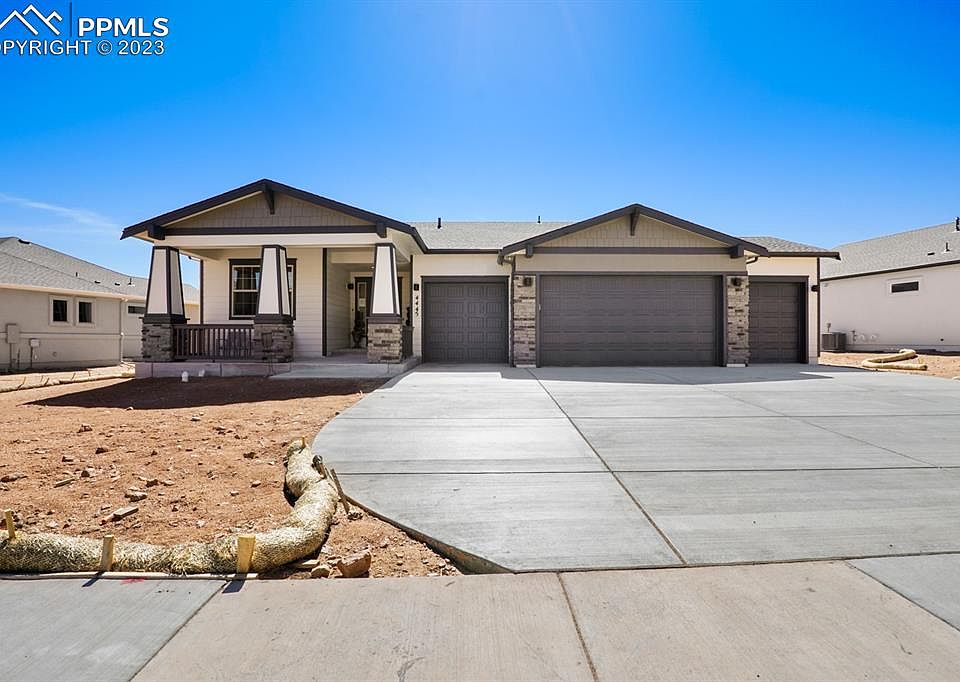Ready now! Paradise ranch plan with 4 car garage in Forest Lakes. 4 bedroom plus study, 3 baths. 4' forward extension of garage great for additional storage. Gourmet kitchen layout, white cabinets, quartz countertops, corner pantry, stainless steel KitchenAid appliances including 36" gas cooktop. Home includes contemporary style gas fireplace in great room, air conditioning, smart home package, blinds in kitchen nook, great room slider and master bedroom. Main level study separated from rest of main level with pair of barn doors. Entry from garage offers convenient mud bench with cubbies. From the garage entry walk through laundry room into master bedroom or to the main living area of the home. Master bathroom showcases a separate shower and soaking tub and large closet. Finished basement includes 1ft. taller ceilings, 2 bedroom, 1 bathroom, recreation room and plenty of unfinished storage space. The interior color selections of the Design Pak Serene-2 offers a sense of tranquility and calmness. The neutral palette of whites, beige and gray is accentuated with brushed nickel fixtures and hardware. This package showcases quartz countertops with expressive veining and unique tile patterns Exterior living offers covered patio with gas line for future grill or firepit.