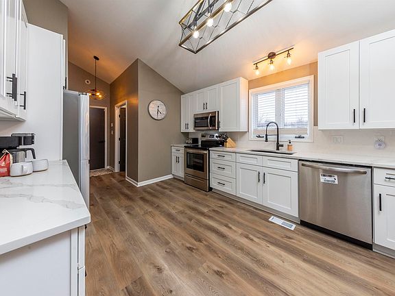 All the right finishes, you can move right in to this recently renovated home! Main floor living and zero entry from the garage, the primary is ensuite with large walk in closet and adjacent to the laundry room. Open living floor plan with large living room, nice kitchen with plenty of cabinets and room for dining table near the sliders to the back patio and all separating the 2 bedrooms and 2nd full bath on the main floor. The basement is a blank canvas for your imagination! Add additional bedrooms, theatre room, gym, offices, or TikTok studio…all situated on a huge lot with easy access to nearby amenities!