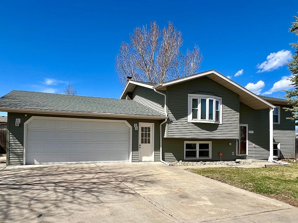 The beautiful front yard with mature evergreen trees and wide driveway welcome you to this 5 bedroom, 2 bath split foyer home. As you enter the main level, you are greeted by an open living room and kitchen/dining area that affords great natural light. The updates to the flooring, lighting, and kitchen cabinets are apparent and the space just feels welcoming. The balance of the level features 2 bedrooms and a fully updated bathroom. The lower level adds three additional bedrooms (1 NTC), a fully refinished bathroom, and a family room with a wood stove and laundry area. Back upstairs - the large deck off of the kitchen adds an entertainment and outside living space suitable for a small gathering or a large crowd! The fence in the back surrounds a beautiful yard with mature trees and landscaping, afire-pit, a nice yard shed, and a raised garden bed. The deep and wide 2-car garage, accessed from the front or rear, features a concrete side parking area suitable for additional parking. Listed by Randy Olivier, RE/MAX Advantage, 605-430-6246.