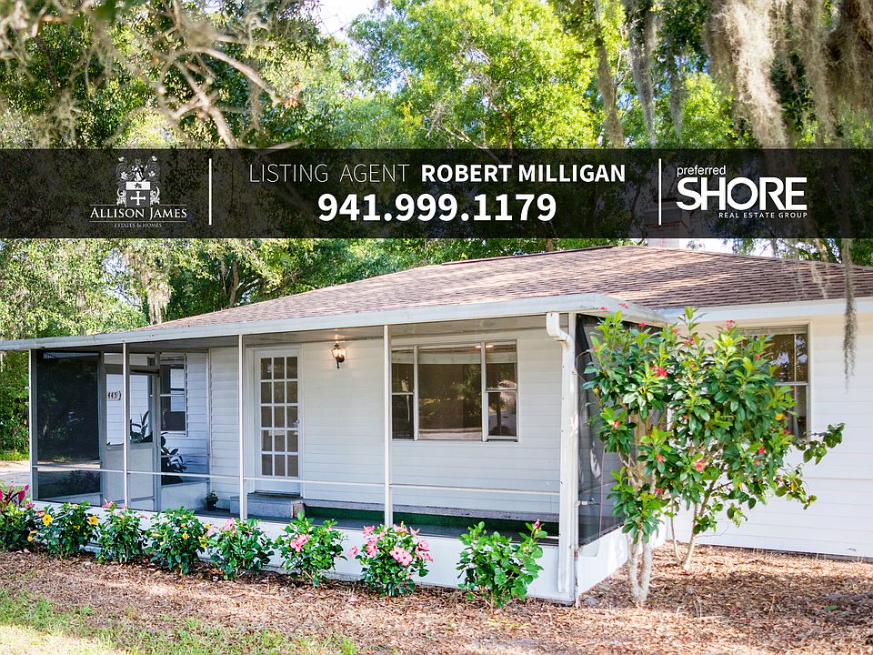 Investors and builders imagine the possibilities with this rare opportunity to own over 1/2 acre in the heart of Sarasota. Three separate homes on the property provide an opportunity as a day care or multi family rental income. The property is accessible by two separate entrances encircling the larger of the tree buildings. This âcottage styleâ home is light and bright with the Grace home is a 3 bedrooms, 2 full baths and a spacious living interior with a wood burning rock façade fireplace, wood floors, glass panel doors and a large covered and screened lanai overlooking a landscape of mature trees and foliage. The kitchen is fully equipped with appliances and light cabinetry. The Kelly cottage is a 1 bedroom, 1 bath 685 sq ft, also the Marilyn cottage offers a 1 bedroom, 1 bath 660 sq ft. A detached garage, utility shed, and fenced yard provide privacy for your vehicles and tools and plenty of yard space for a garden or playground. There are multiple exterior parking spaces as well for work or recreation vehicles. Bee Ridge Farms is centrally located with easy access to the major highways and I-75 with Venice/Englewood to the South and Tampa/St. Petersburg to the North for easy traveling to work, shopping and recreation.
