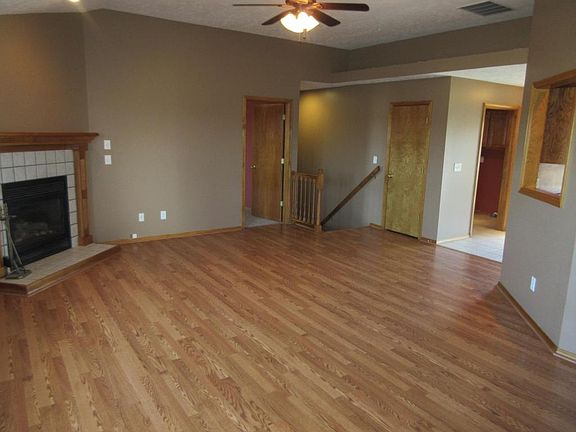 This nice walkout basement home sits on a corner lot in Kickapoo Schools. Exterior offers low maintenance with vinyl siding. The main floor offers laminate floors in great room & tile in the entry, kitchen, utility room & all 3 baths. New carpet in main floor bedrooms. Plantation shutters & a cozy gas log FP in the GR. Newer lighting in several rooms. The kitchen has a pantry with pull out drawers & all appliances stay. You'll love the open basement with a huge family room with offset area that is great for a pool table, game room area or home office. There is also a 4th bedroom, full bath & 2 storage areas. Bonus features are a tank less hot water heater & water softener. Privacy fenced yard w/ a 9x16 Cedar Ridge building new in 2015. In ground sprinkler system front & back.