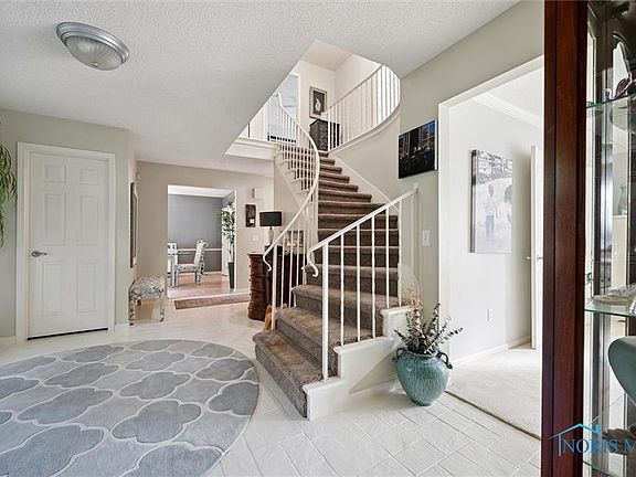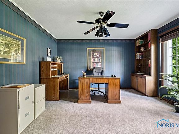 Pristine 2 story situated on a beautifully landscaped, private lot with stamped concrete multi-tier patio, fenced yard and adorable shed! Updates include Roof '25, Furnace/AC '23, Windows '22, Double Front Door '21. Large den w/built-ins, spacious/bright living rm & formal dining rm, cozy family rm w/FP & wetbar, 1st flr laundry, 2 half baths. Kitchen w/white cabinets, island, tile backsplash, granite, dbl oven, pantry, eating area & slider. Primary w/ensuite, all spacious bdrms, full bath on UL. Finished bsmt offers huge family rm, wetbar and large storage rms.
