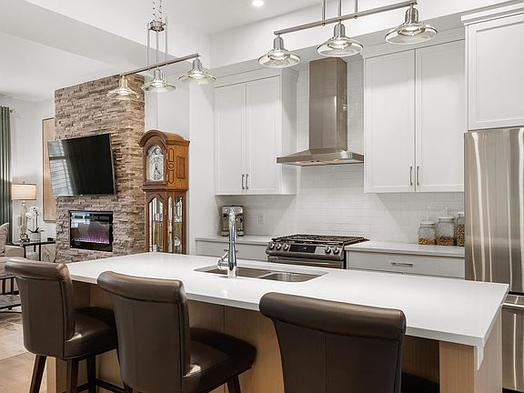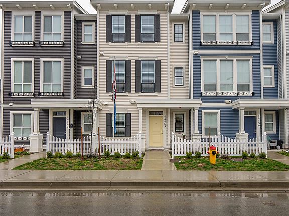 IMPRESSIVE NON STRATA ROWHOME. 2 bed PLUS DEN 2.5 bath. One of Websters' landing most desirable Rowhomes. Large 1702sq ft, unit with upgrades including stainless steel gas range, cultured stone fireplace wall, added light fixtures, full laundry room. 3 Storey with 2 PRIMARY bedrooms, each bedroom features ensuite & walk in closet. AC, Quartz countertops, laminate floors, built in vac, N/G BBQ hook up,10ft ceilings on main floor, large double car garage fits a full size truck and car, with additional 2 vehicle parking pad. Ideal Sardis location, mountain views, surrounded by parks, and nature. Steps to the Vedder River, Rotary Trail, walking distance to Unsworth Elementary and Mt. Slesse Middle School, Watson Elementary and minutes to all the shopping Garrison village has to offer.