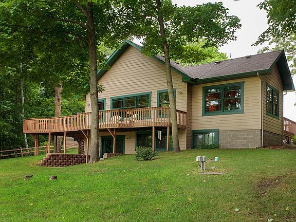 Immaculate 1-level home with panoramic views of 22 acres of golf course-like property & lake. Ripple River runs thru property right into Farm Island Lake. Wildlife abounds; deer, coyotes, fox, sandhill cranes & herons. Open floor plan with vaulted black ash ceilings & black ash hardwood floors. Lower level office/guest room. 9 ft ceilings throughout. Many built-ins, tons of storage. Garage boasts separate 40x34 insulated & heated shop, & potting shed.