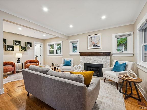 This stunning 4-bedroom, 2-bath Berkeley bungalow seamlessly blends historic character with modern upgrades. Thoughtfully updated throughout, the home features resurfaced original oak floors, all-new recessed lighting and electrical, and custom Sierra Pacific wood/clad windows (2021). A new gas fireplace with a fully rebuilt chimney creates a warm focal point in the living space, while the main floor bathroom offers spa-like comfort with heated tile floors, an upgraded vanity, and a soaking tub. Additional upgrades include new solid interior and exterior doors (2021), ensuring both style and energy efficiency. The exterior is as polished as the interior. Professionally landscaped with mature trees, shrubs, and privacy borders, the yard includes a large custom-built covered patio—ideal for outdoor dining and entertaining. A fully irrigated 8-zone system (including garden boxes and drip lines) is Wi-Fi controlled for easy upkeep. The property also features a new 60-foot paved driveway plus additional private alley parking for an RV, trailer, or extra vehicle on a two-year-old blacktop. For added convenience, the detached garage is equipped with a dedicated 50-amp electrical panel and EV charging hookup, providing flexibility for electric vehicles, workshops, or future power needs. Located in Denver’s vibrant Berkeley neighborhood, the home is just minutes from Tennyson Street’s acclaimed restaurants, coffee shops, yoga studios, and boutique gyms. Parks, breweries, and art galleries are close by, with convenient access to I-70, downtown, and the mountains—offering both urban convenience and easy escapes.