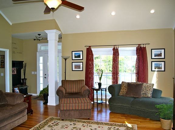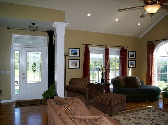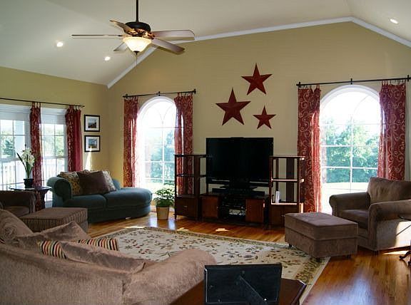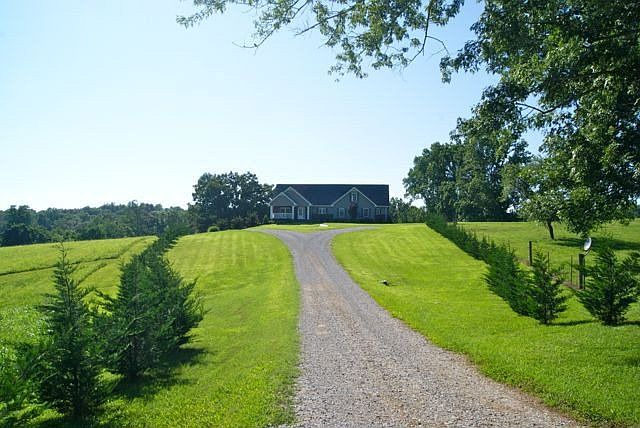 A very special family home, crafted with quality materials and design, adorned with classic, traditional decor. The setting is a dream- a beautiful grassy knoll overlooking rolling fields dotted with ancient, gigantic oaks and hardwoods. The home is very appealing with a mix of brick and vinyl with breezy, concrete southern living porches on front & back to enjoy the vistas of fields and mountains. Interior features a super spacious great room with vaulted 12' ceilings (w/ fireplace) flowing nicely to the XL kitchen with island and custom cabinets with large drawers, and cool features (Kohler sink & faucets) into the dining room. Plenty of windows with circle tops bring the outside in for an open airy feeling. Bedrooms are generous in size and custom hand laid, sanded and stained hardwood floors throughout the main level. Master is plenty large with the perfect suite setup- big walk in closet, double vanities, jet tub, shower & private potty. Upper level is home to 2 large bedrooms...