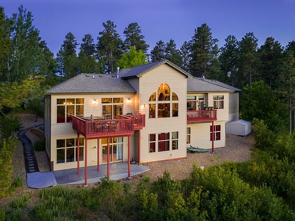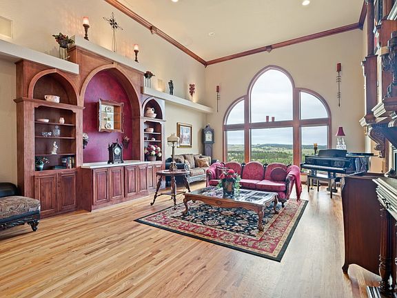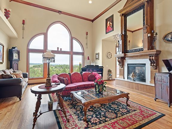 FIRST TIME OFFERED! Parade Home with careful attention to detail, craftsmanship, elegance and beauty throughout. The home sits on 5.83 acres with natural fruit trees, garden and landscape that embodies living in the Hills! The family room has updated hardwood flooring and a towering 16 ft ceiling with rare antique double sided fireplace that was relocated from a mansion in New York. The main floor living space features some of the best panoramic views of the Hills. Gourmet kitchen all updated appliances and granite imported from Siberia. Hand crafted stained glass side lights allow natural light to flow into this great space. There is a gorgeous sitting area in the solarium where you can enjoy the tranquility of the water flowing and natural plants. The lower level features two large bedrooms w bath suites and lofts. There is also a large office that could be converted to a 4th bedroom, a great fitness and entertaining space.