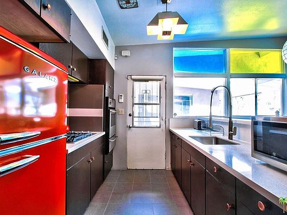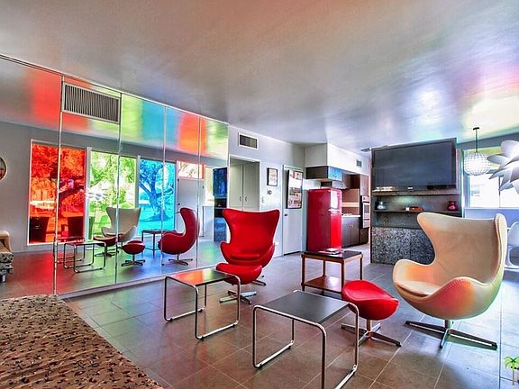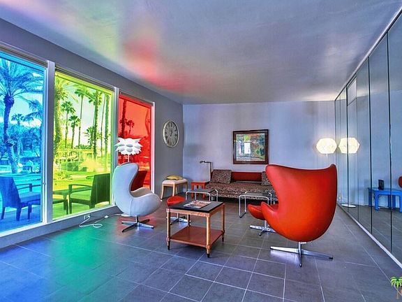 Enchanting Mid-Century Modern home set on the beautifully landscaped grounds of Indian Wells Village. Enter through a gated courtyard leading into an updated kitchen with open floor plan including a dining area featuring a fun multi-color heat resistant 3M window treatment offering energy savings while creating a trendy mid-century vibe. The home includes 2 bedrooms with a beautiful Carrera marble bathroom in between and a detached 3rd bedroom with en suite. This community is walking distance to the Indian Wells Tennis Garden and has only 20 charming homes surrounding a sparkling pool & volleyball court.