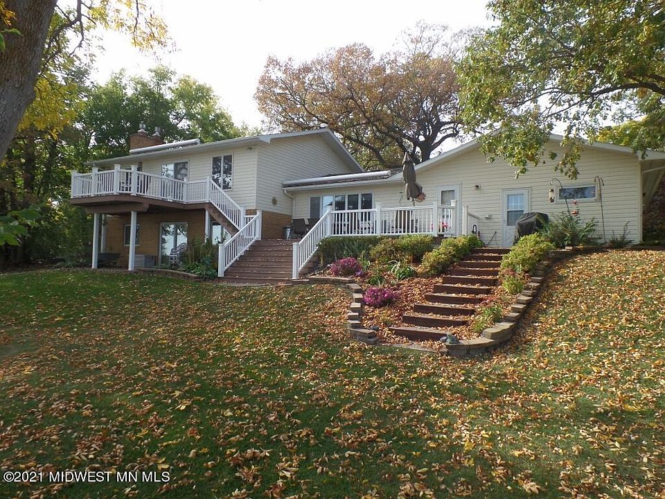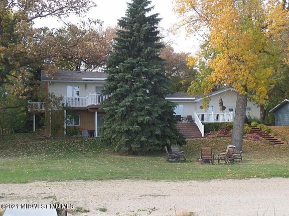 Rush Lake: Year round 4 bdrm, 4 bath home on level lot with 150' of nice sand beach. Beautiful lakeside decks. Updated kitchen new appliances and granite counter top. Multi-level home with main level kitchen, dining, and laundry. Upper level living room, master bedroom/bath, 2nd bedroom and bath. Walk-out lower level with family room, 2 bedrooms, and bath. Basement with storage and mechanical room. Large, nicely wooded lot with extra detached 2 car garage. Dock included.