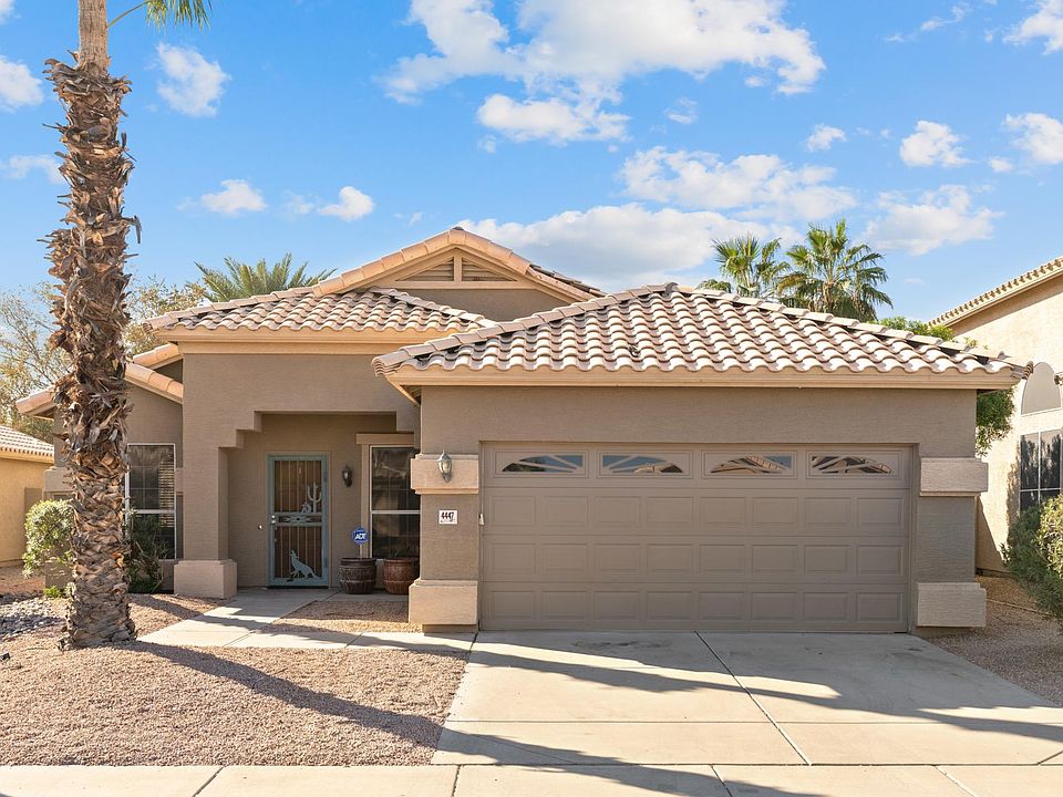 Beautiful 3 bed 2 bath + office with private backyard oasis with covered patio, privacy trees, grass and pool! Gorgeous real hardwood floors and brand new carpet throughout! Open plan kitchen with stainless steel appliances and double oven. Large floor plan with huge vaulted ceilings and tons of natural light (as well as sun shades to keep the bills down in summer). Master bedroom with upgraded custom shower, tub and double sink vanity. Great Phoenix/ Ahwatukee location just minutes away from freeway access and highly sought after school district. Rent includes weekly pool service and tree maintenance 1 year lease **No pets** COMPLETE SCREENING BELOW TO SCHEDULE VIEWING: This unique home will go fast, apply today!